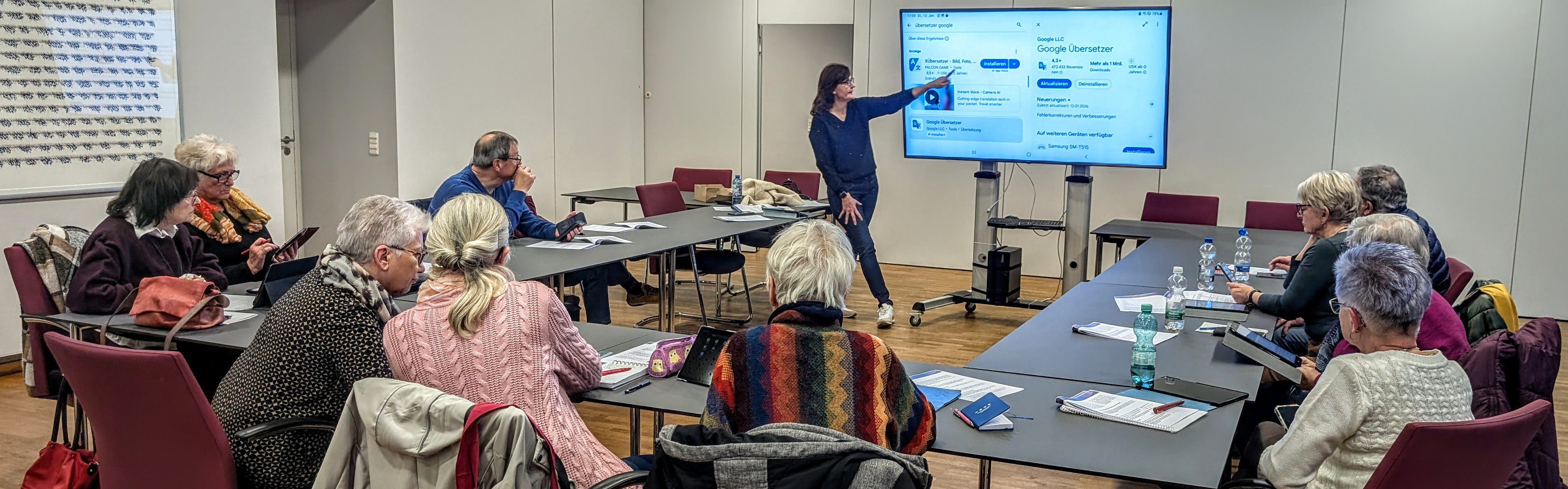 | Beschreibung | Referentin Silvia Hame, selbst seit frühster Kindheit sehbehindert, zeigte einfache Bespiele auf, wie man insbesondere Verwaltungen barrierefreier gestalten kann |